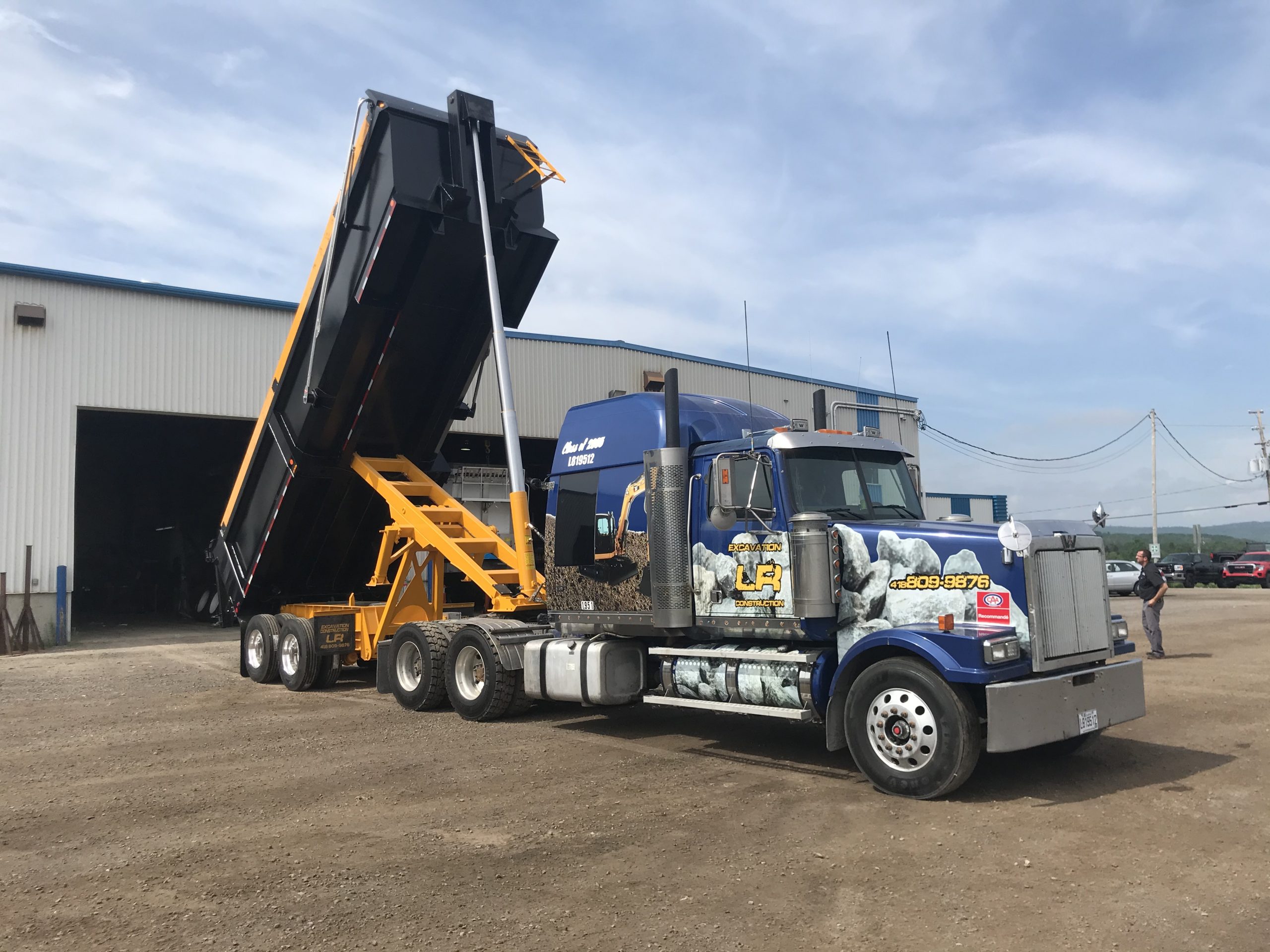Cette semi-remorque s’adapte à différent type de transport tel : gravier, asphalte, sable, divers marchandises en vrac. Elle est construite complètement en acier dont la benne en Hardox 3/16 grade 450.